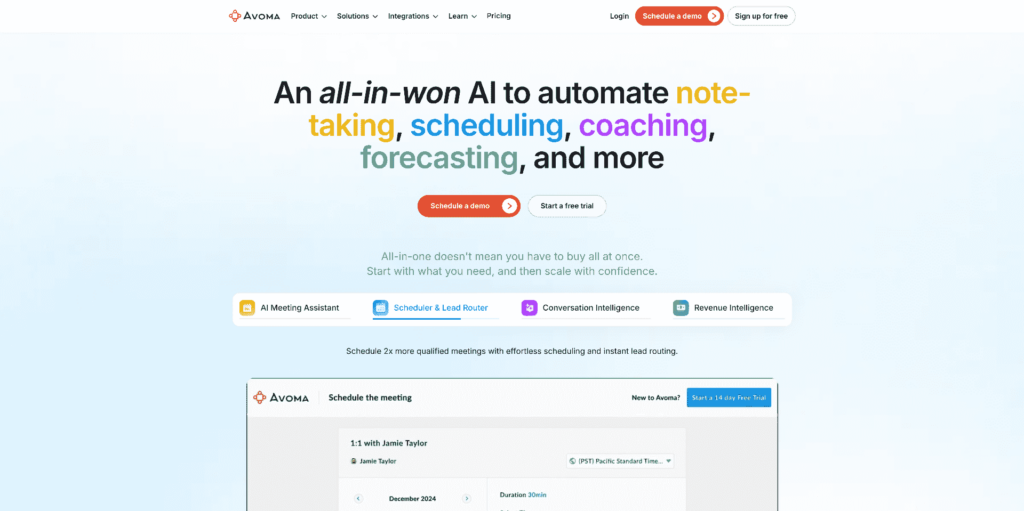 Avoma markets itself as an AI meeting assistant that saves 4+ hours per week by automating note‑taking, follow‑up emails, and CRM data entry.