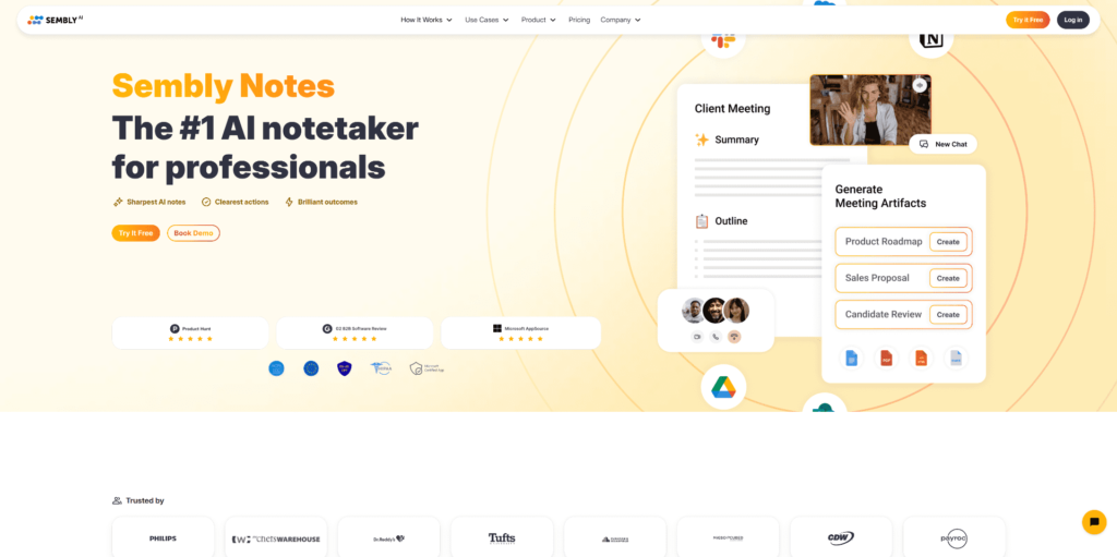 Organizations need formal meeting minutes and task management. Sembly’s ability to join calls on any platform and produce structured minutes makes it ideal for board meetings, project kickoffs, and client reviews.